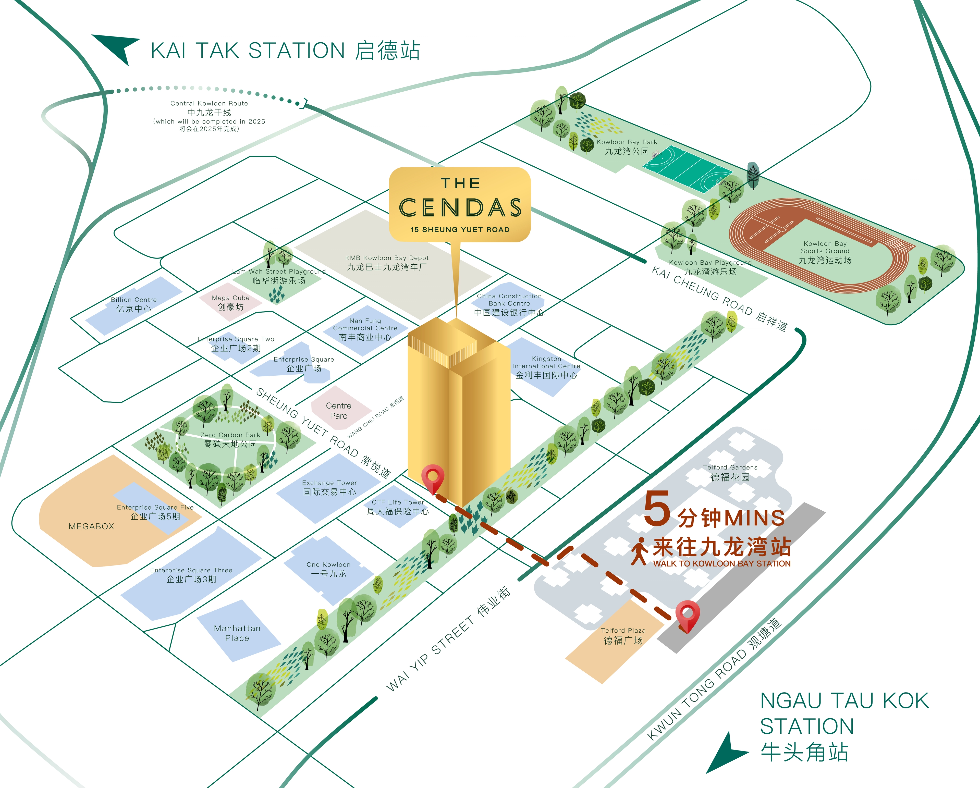 紧连西九龙油麻地交汇处、启德发展区及九龙湾道路网,横跨中九龙干道
